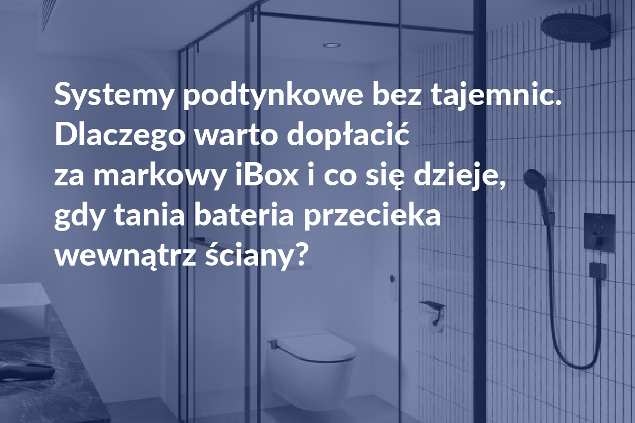 Dzisiaj zajmiemy się systemami podtynkowymi. Z czym należy się liczyć, jeśli kupiona niedawno tania bateria zaczyna przeciekać wewnątrz ściany? Co powoduje, że coraz więcej Klientów decyduje się na profesjonalne iBoxy od renomowanych producentów? Zachęcamy też do zapoznania się z charakterystyką jednego z takich produktów.